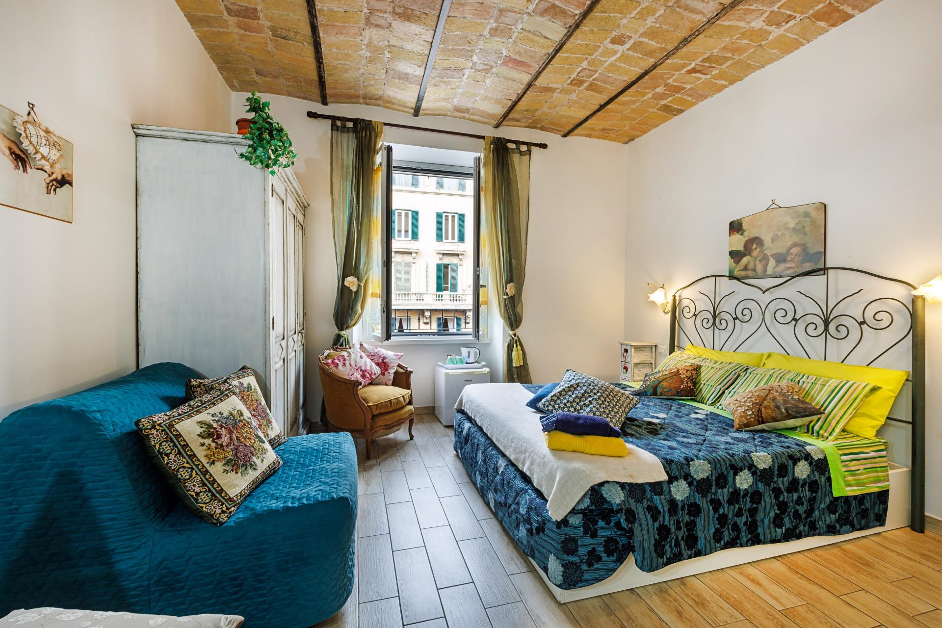 Le nostre camere sono pensate per offrire un soggiorno sereno e piacevole, con ambienti curati, bagno privato e tutti i comfort essenziali. Un rifugio accogliente dove rilassarsi dopo una giornata alla scoperta delle meraviglie di Roma, nel cuore del quartiere più iconico della città.